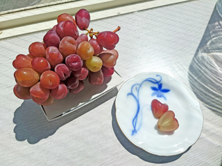只今開催中のマッケンジー・ソープ展へお越しくださいましたお客様より、今展に寄せて「マイハート」というとても甘くて美味しいブドウをいただきました^^♪