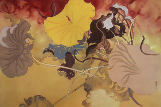 筆を重ねながら深い黒色を微妙にぼかし、孟さん独自の美感を表現したそうです。